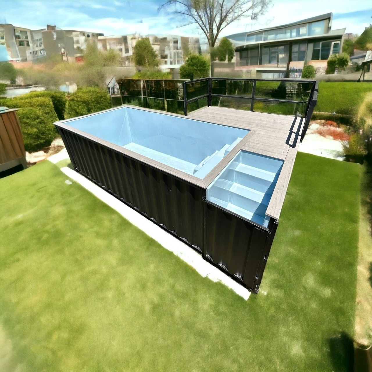 Pick between a 16ft, 20ft, and 40ft container pools with various upgrade options.